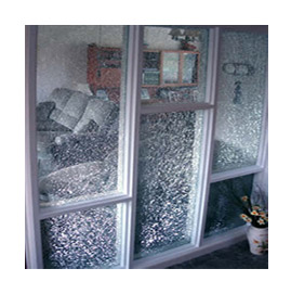 It is also called as a privacy glass. It allows very less light to pass through as it is made up from acid etching method.